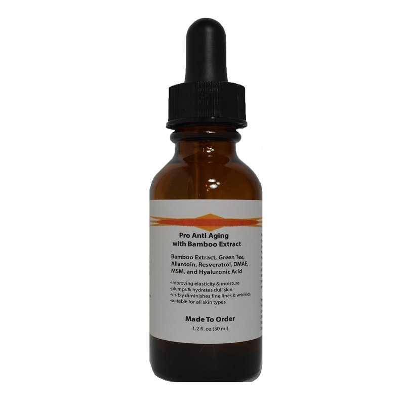 Pro Anti Aging Serum Bamboo Extract, Green Tea, Allantoin, Resveratrol, DMAE, MSM, Hyaluronic Acid (1.2oz, Dropper Dispenser)