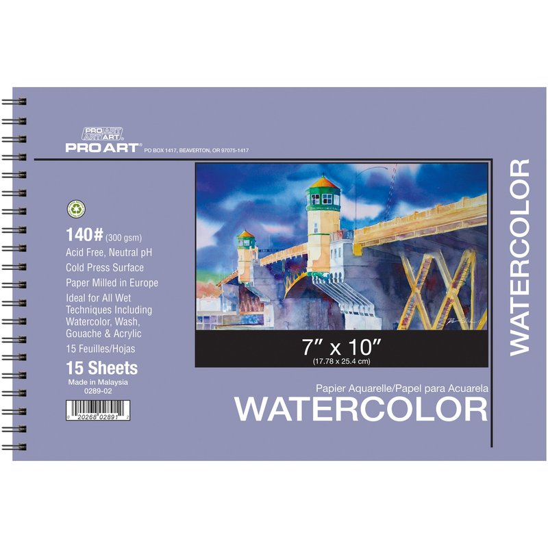 - Pro Art Painting Pad Watercolor Pad 7"x 10" Acid Free 140lb 15pc Spiral