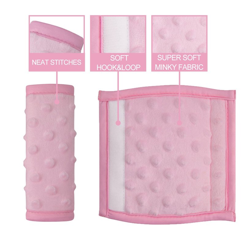 - 【Protection for Babies】:Our car seat strap covers are made of extra soft polyurethane foam and minky dot fabric, which can give comfort and protection for babies to prevent them from rubbing and irritation from car seat straps