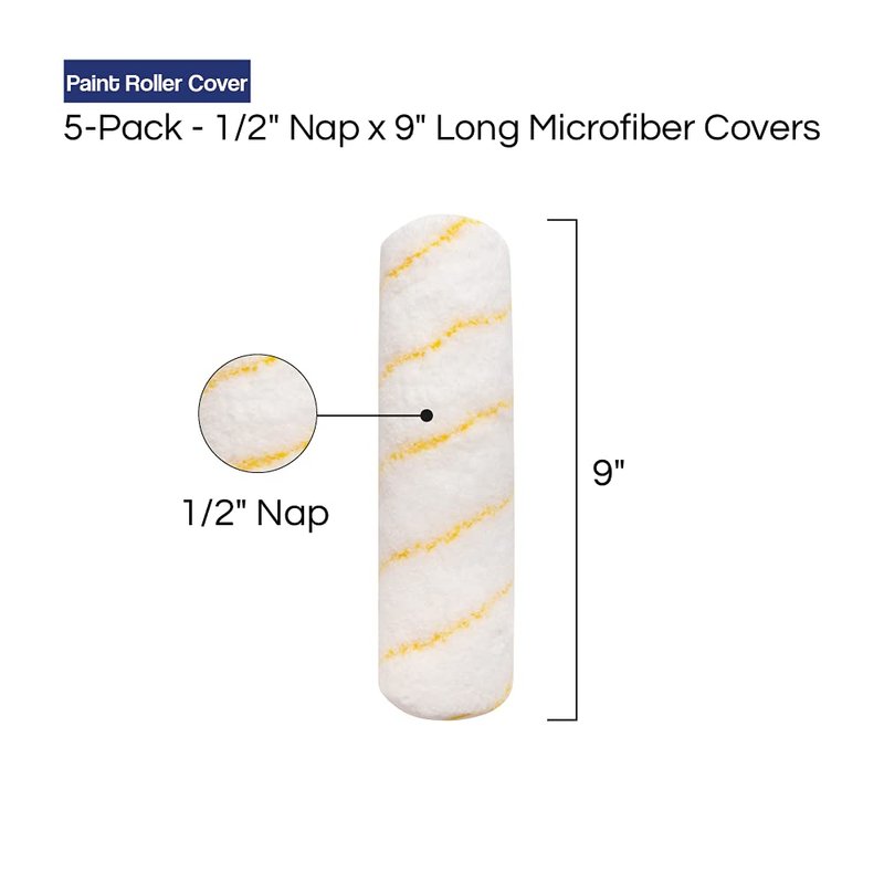 Pro Grade - Paint Roller Covers - 1/2 X 9 Inch Microfiber 5 Pack