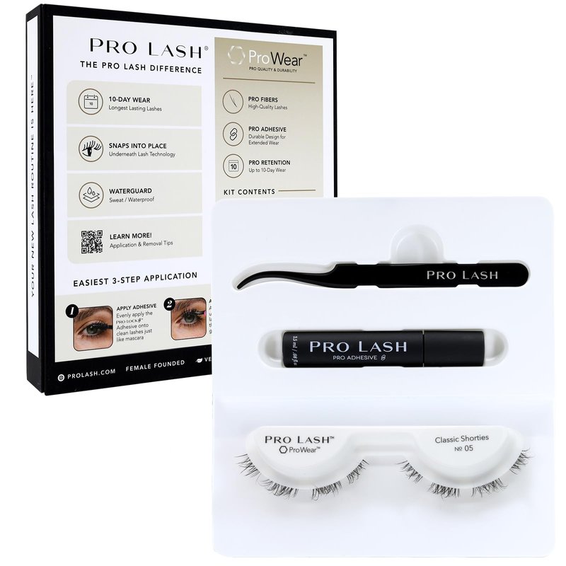 - Classic Shorties No. 05 – Crafted by our expert Lash Artists, this lash extension kit gives you a natural, refined look with a 2mm shorter length that suits every eye shape; this Pro Lash ProWear Mini eyelash clusters kit is available in black