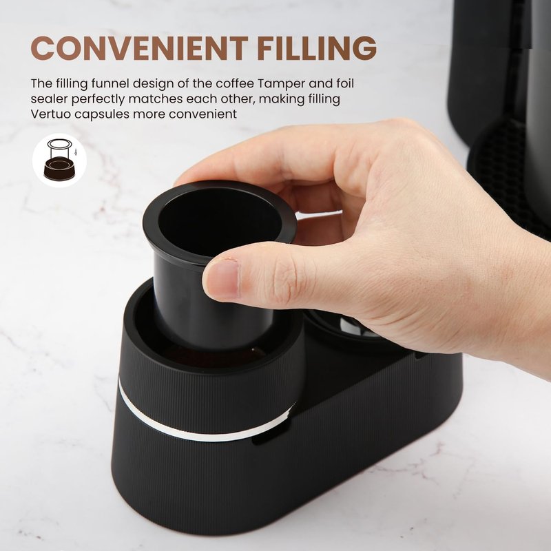 - EFFICIENT FILLING FUNNEL: Are you still worried about coffee powder splashing around when filling the capsule? Our Vertuo capsule refilling kit is designed with a powder filling funnel, which is designed to guide every gram of coffee powder directly into the Vertuo capsule - no spillage, no waste, no worry and no effort.
