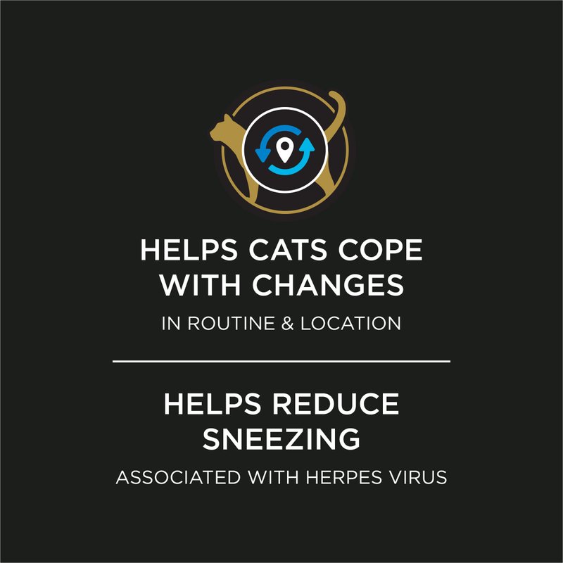 - Supports cats’ ability to cope with changes in routine and location, relieves cat stress and supports positive behaviors such as playing and seeking out social contact
