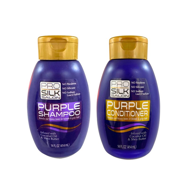 Pro Silk Salon Purple Shampoo and Conditioner Set, 14 Fl Oz, Infused with Coconut Oil and Shea Butter