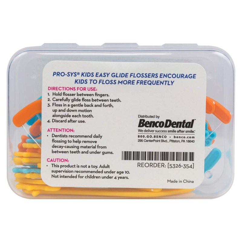 Start your children with flossing the fun way with PRO-SYS Kids flossers. Watch them develop a lifelong oral care routine 2x a day as they happily floss with these fun giraffe shapes and colors. Slides easily between teeth to remove plaque and debris. The easy-to-grasp handle and kid-size flosser head makes them easy to use for kids and makes them an easy win for parents at the sink. Flavor free. BPA free. 3 packs of 24 = 72 total flossers! Adult supervision recommended for for children under 10 years of age. Not intended for children under 4 years of age.