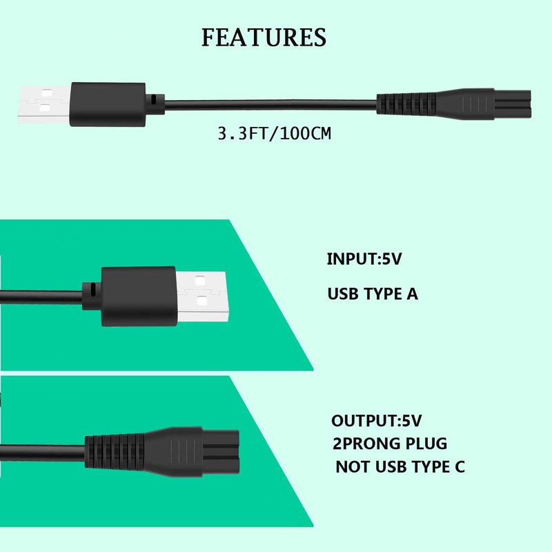 - 【Easy to Use】Simplify your charging routine. Connect the USB Type-A plug to a computer, laptop, power bank, or any charger adapter with a USB port. Charging your shaver has never been more straightforward.