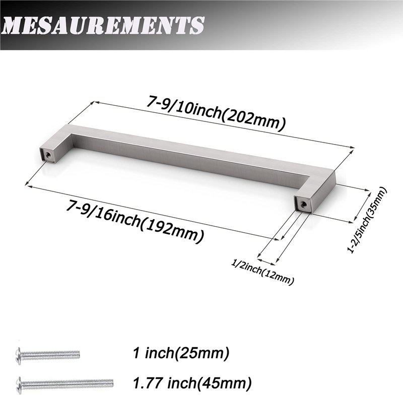 - [ MEASUREMENT ]Hole Centers: 192mm(7-9/16”); Total Length: 202mm(7.95”); Width:12mm(1/2in);Thickness:12mm(1/2in);Height:35mm(1.4in),Easy to Install with Included Screws,2 size screws include:1 inch(25mm) 1.77 inch(45mm),If you need other length of long screws, you can contact us.