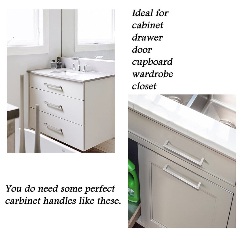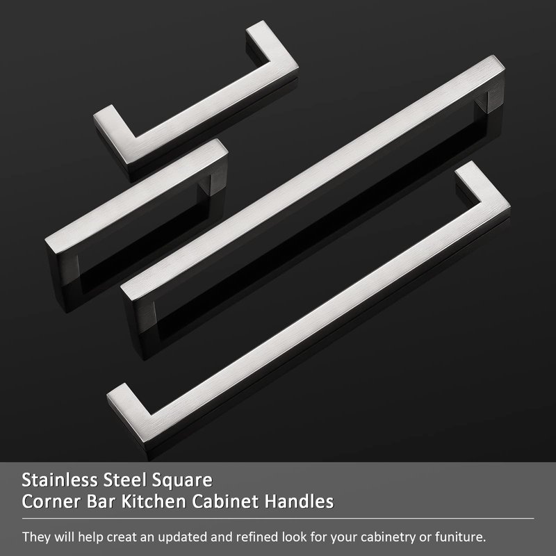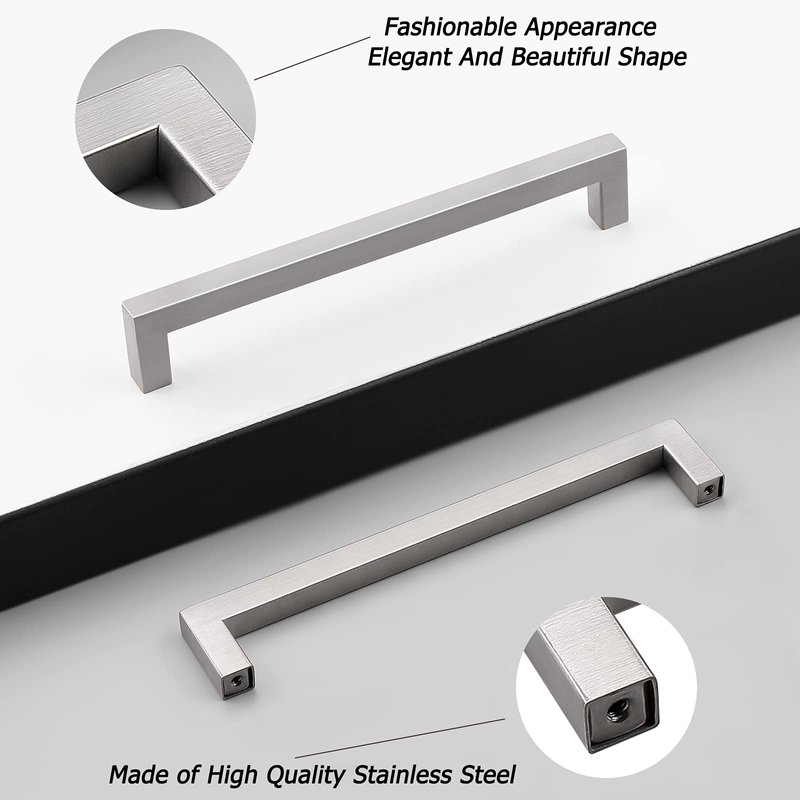 - [ STAINLESS STEEL KITCHEN CABINET HANDLES ] Material:Stainless Steel;Finish:Brushed Stainless Steel,it is light weight made of Stainless Steel; Our cabinet pulls are beautifully crafted and designed. Enhance your home with their simple elegance;