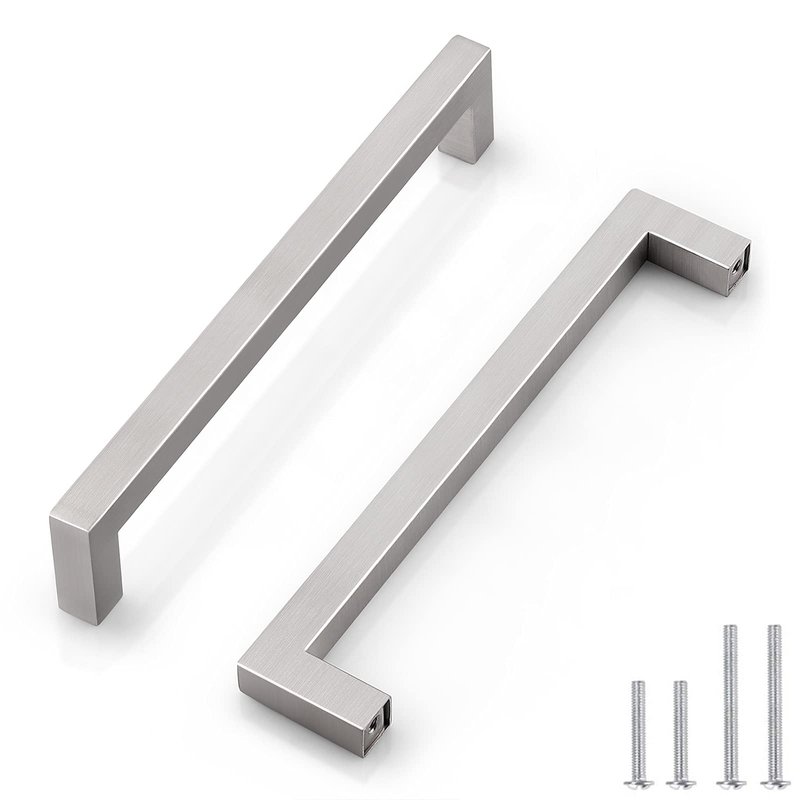 Probrico 5 Pack Brushed Satin Nickel Cabinet Handles Hole Centers 7-1/2 inch 192mm Stainless Steel Drawer Pulls Square Corner Bar Kitchen Cabinet Pulls