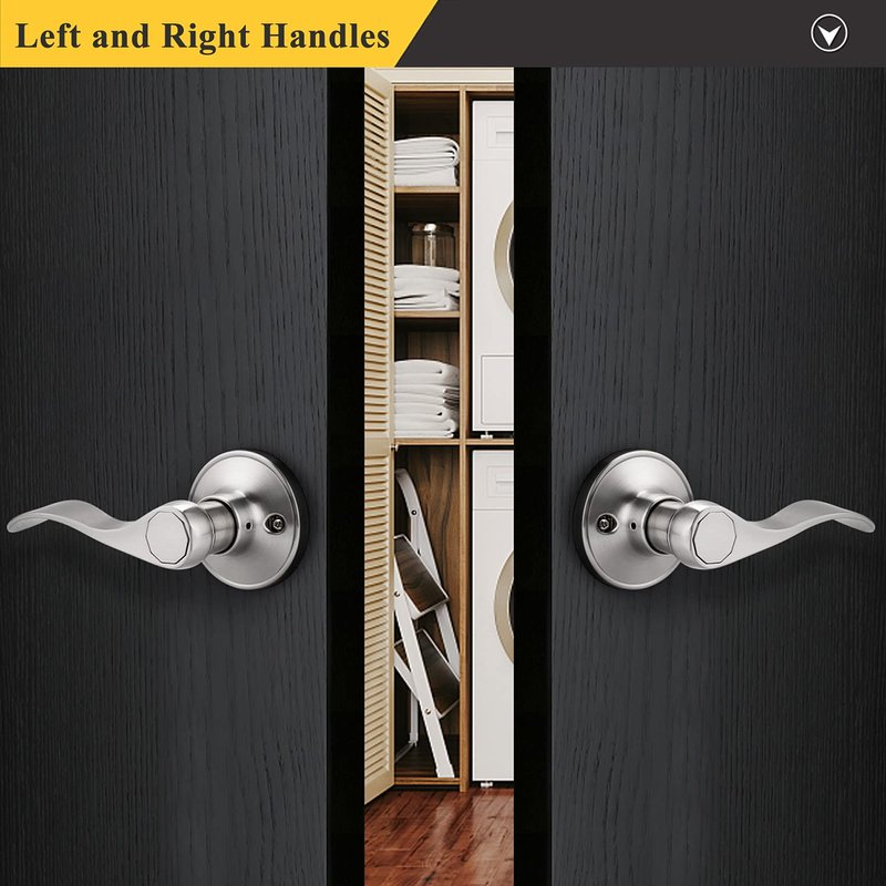 Probrico Pack of Two Dummy Door Lever for Left Hand and Right Hand Brushed Nickel Interior Door Handle Wave Style Non-Turning Door Knob Stainless Steel