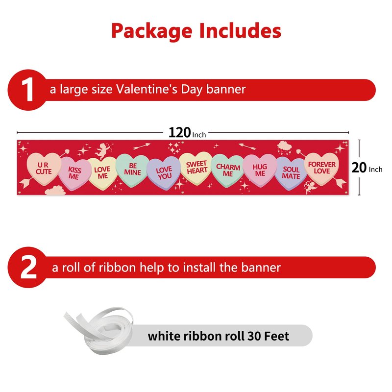 - [Large Banner] You will receive a large size 120" x 20"/300 x 50 cm valentines day banner.