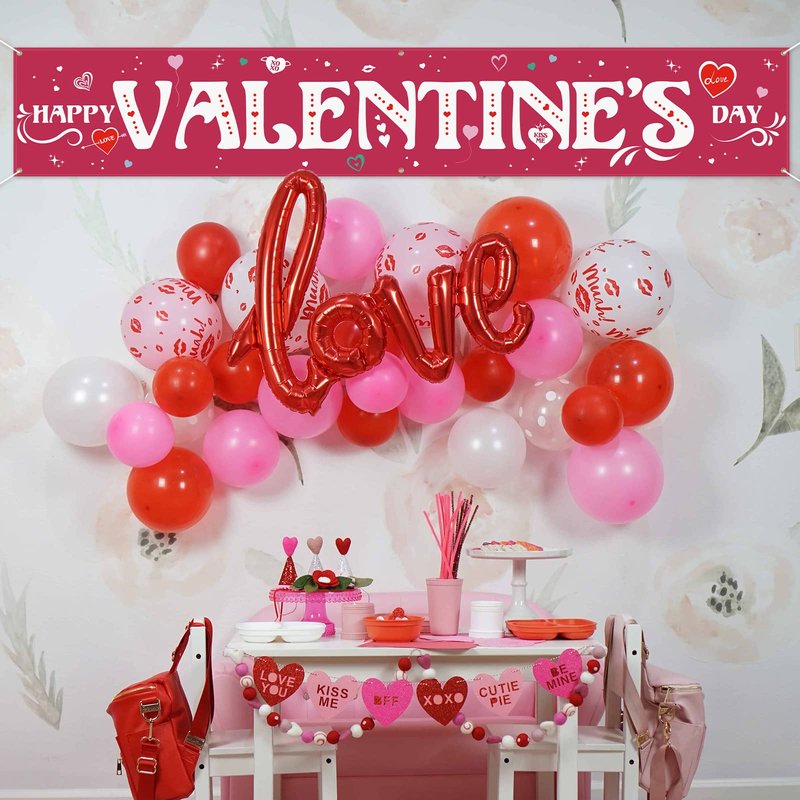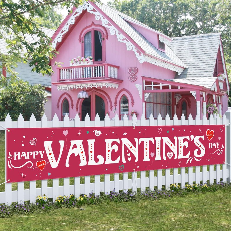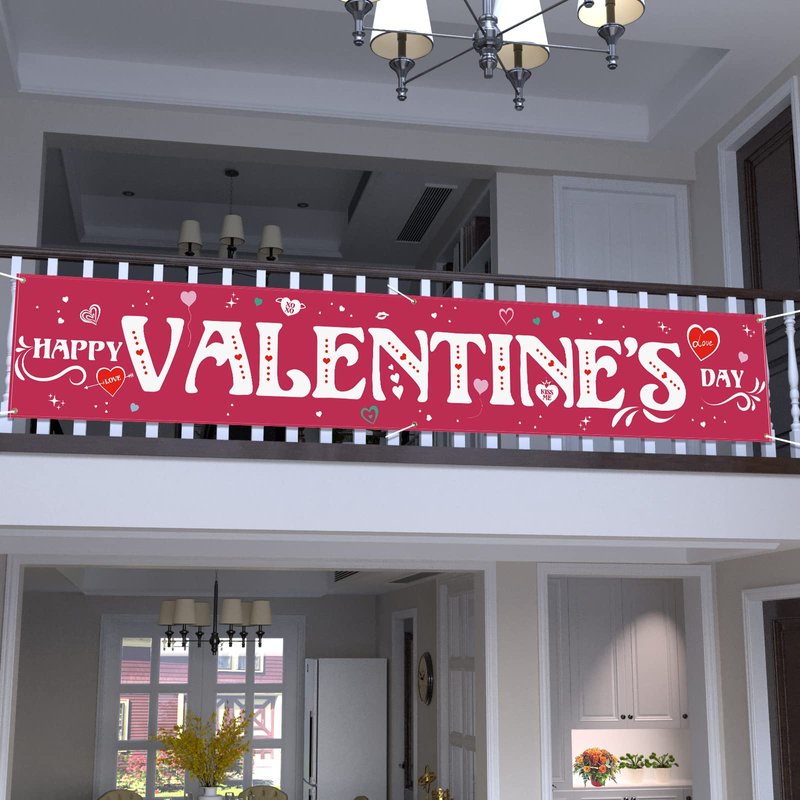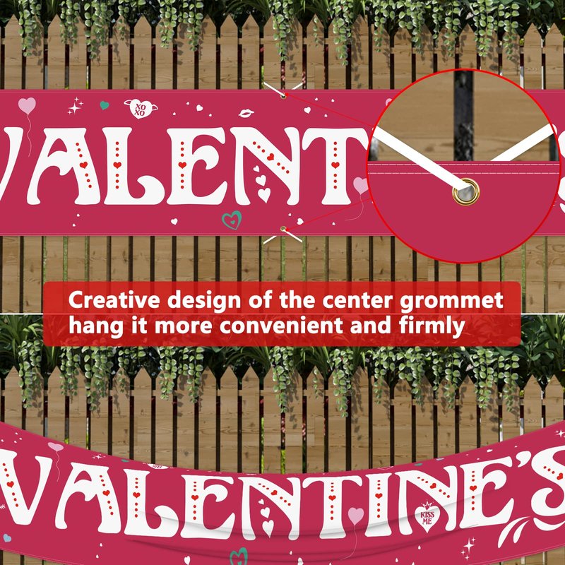 - [Nice & Creative Design]: The valentines day banner has creatively 6 brass grommets, coming with a roll of rope, easy to hang. Using exclusive and advanced double sided printing technology that the banner can be seen brightly and clearly on each side.
