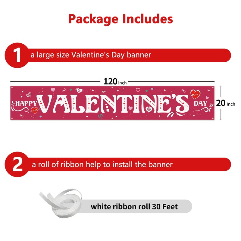 - [Large Banner] You will receive a large size 120" x 20"/300 x 50 cm valentines day banner.