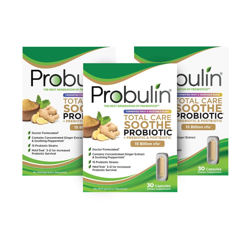 - Probulin Total Care Soothe = Prebiotics + Probiotics + Postbiotics + Ginger Extract + Mint for Digestive Support - Shipped Cold & Protected - 15 Billion CFU - 15 Strains, 30 Vegan Capsules(Pack of 3)