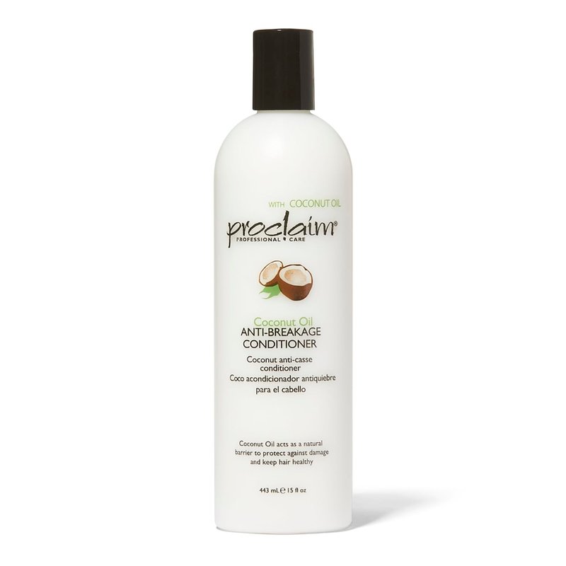 Proclaim Coconut Oil Anti-Breakage Conditioner contains nourishing Coconut Oil that acts as a barrier to protect against damaged hair and free radicals gently cleanses smoothes and moisturizes.