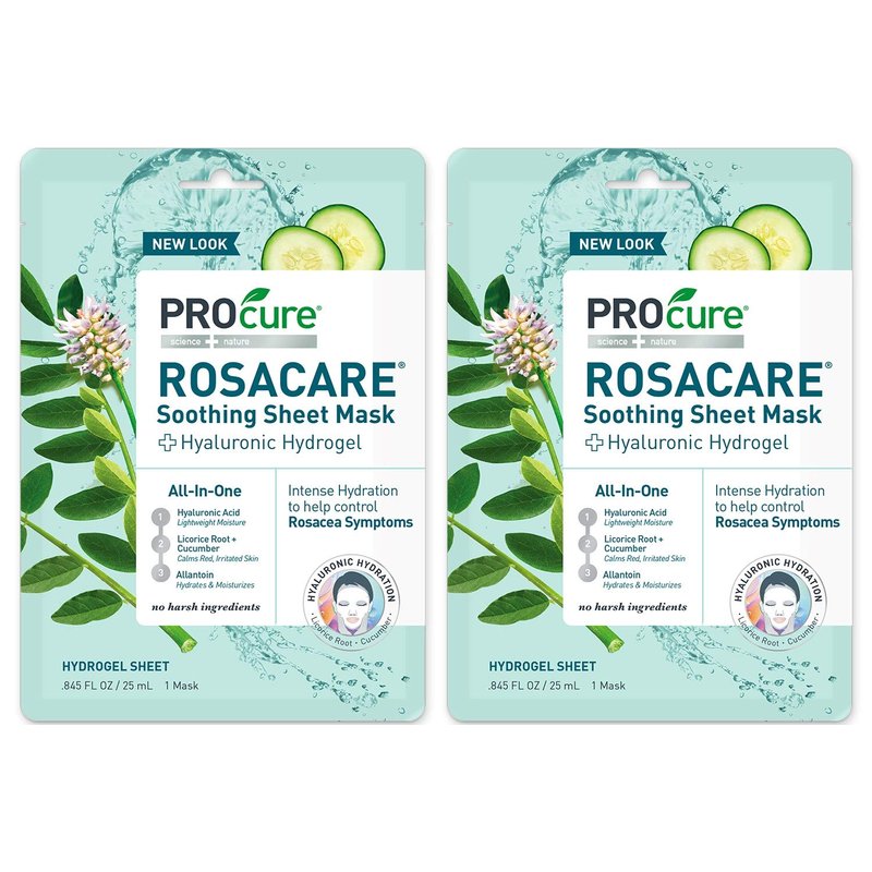 PROcure Rosacare Soothing Sheet Face Mask with Hyaluronic Hydrogel for Rosacea Symptoms, 2 Masks