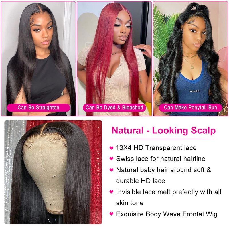 - Fashion Hairstyle: 13x4 Straight Lace Front Wigs, 150% Density, Full and Thick. Hair Texture Make Every Girl Look More Gorgeous and Attractive.