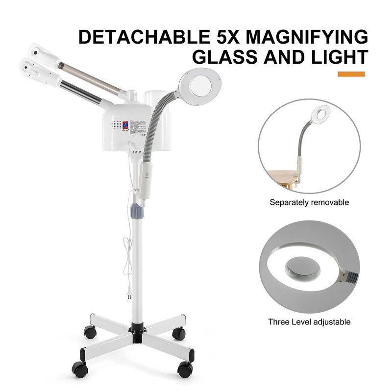 Professional 3 in 1 Facial Steamer Upgrade Esthetician Steamer with hot & Cold Nozzle 5X LED Magnifying Lamp Beauty Salon Spa