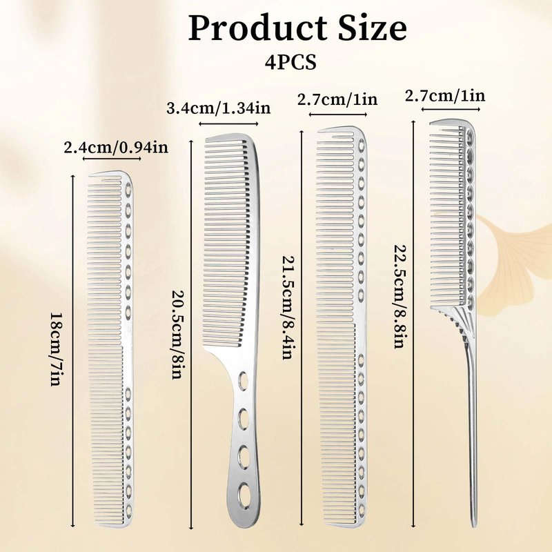 - Product Includes: Our metal hair combs includes a long hair cutting comb,short hair styling comb,handle comb,and tail comb,four practical combs for all-around hair care,suitable for professional stylists and home salon use.