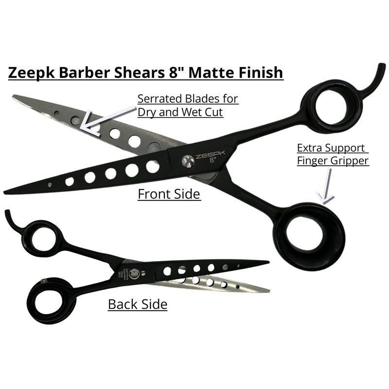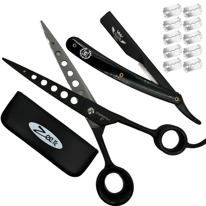 - Zeepk Barber Haircutting Shears 8" Black Matte Finish + Zeepk Shaving Razor + Shears Travel Case + 10 Premium blades