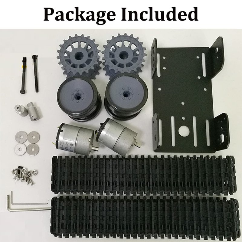 - PACKING LIST -- Include 1pc metal frame, 2pcs plastic driving wheels, 2pcs plastic bearing wheels, 2pcs plastic tracks and screw kit. Smart robot car chassis kit is a good product for DIY, science educational kits, suitable for robot enthusiasts, car enthusiasts, etc. Any question, please feel free to contact us, and we will reply you as soon as possible.