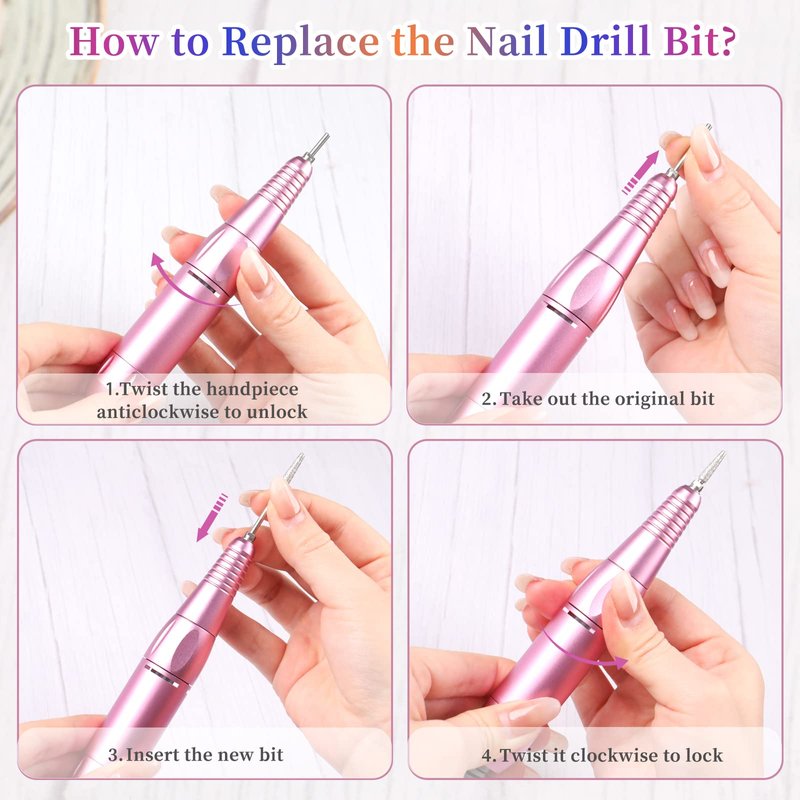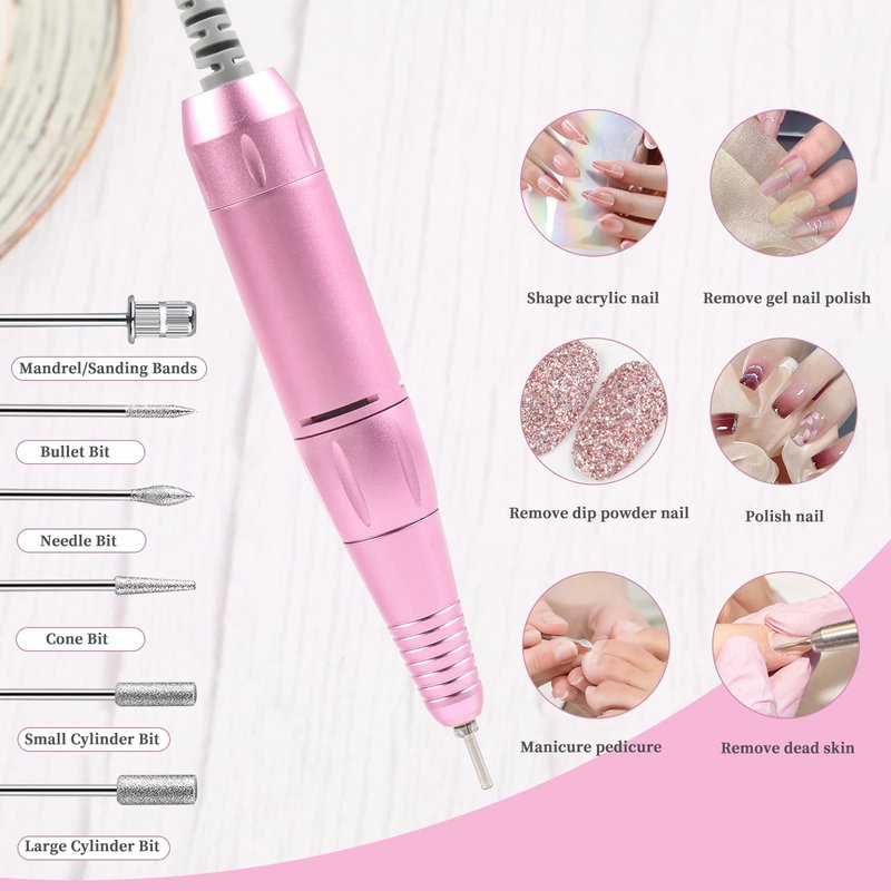 - ➤【Multifunctional Nail Drill Kit】 The cordless nail drill set contains a nail dust brush, 6 sanding bands and 6 nail drill bits with different shapes for various applications. This set will meet your need to shape acrylic nail, remove gel nail polish, remove dip powder nail and so on. If you have any questions about this efile nail drill, please contact us freely.