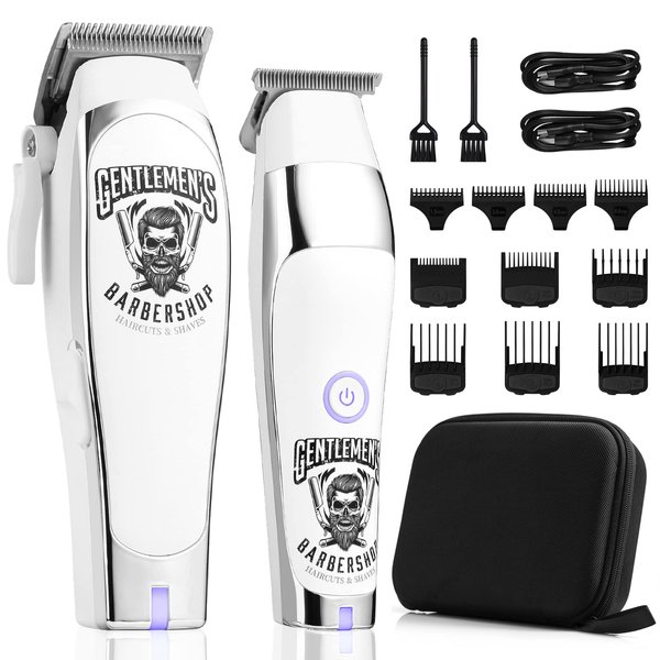 - ✂【Self-sharpening T-blade Haircut kit】: This hair trimmer has a 10W powerful motor, with a non-slip surface and easier to hold. The sharp and durable precision stainless steel T-blade can efficiently achieve smooth and close cutting. Electric Pro Li trimmer is suitable for oil head, engraving push white, vintage hair style, bald head, which can create a stylish hairstyle.