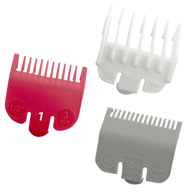 - 3 Professional Hair Clipper Guards Cutting Guides Fits for Most Wahl Clippers, Color Coded Clipper Combs Replacement - Guard Number: #1/2, #1 and #1 1/2 (Length: 1/16 inch, 1/8 inch and 3/16 inch).