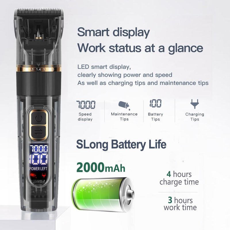 Professional Hair Clippers for Men,Barber Clippers for Hair Cutting,IPX7 Waterproof Hair Trimmers Cordless for Men Beard Trimmer,Wireless LCD Display Haircut Grooming Kit