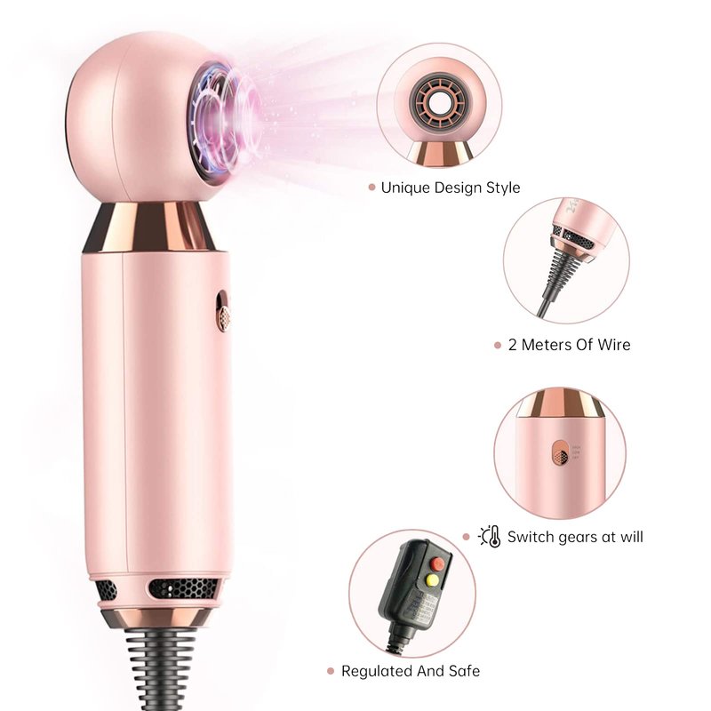Professional Hair Dryer 800W Lightweight & Compact Blow Dryer Powerful Flow Hair Dryers for Travel and Home Concentrator Nozzle Pink