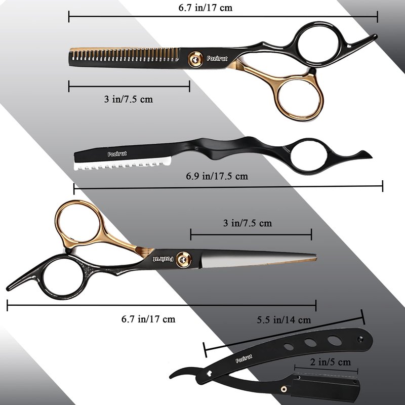 - ✂️ 🪒: PREMIUM STAINLESS STEEL: Fozirut professional hairdressing scissors and hair cutting razor are made of high-quality stainless steel. Hair cutting scissor with extremely sharp blades for clean cut, evenly trim hair with ease, can trim wet and dry hair, no worry about hair split end.