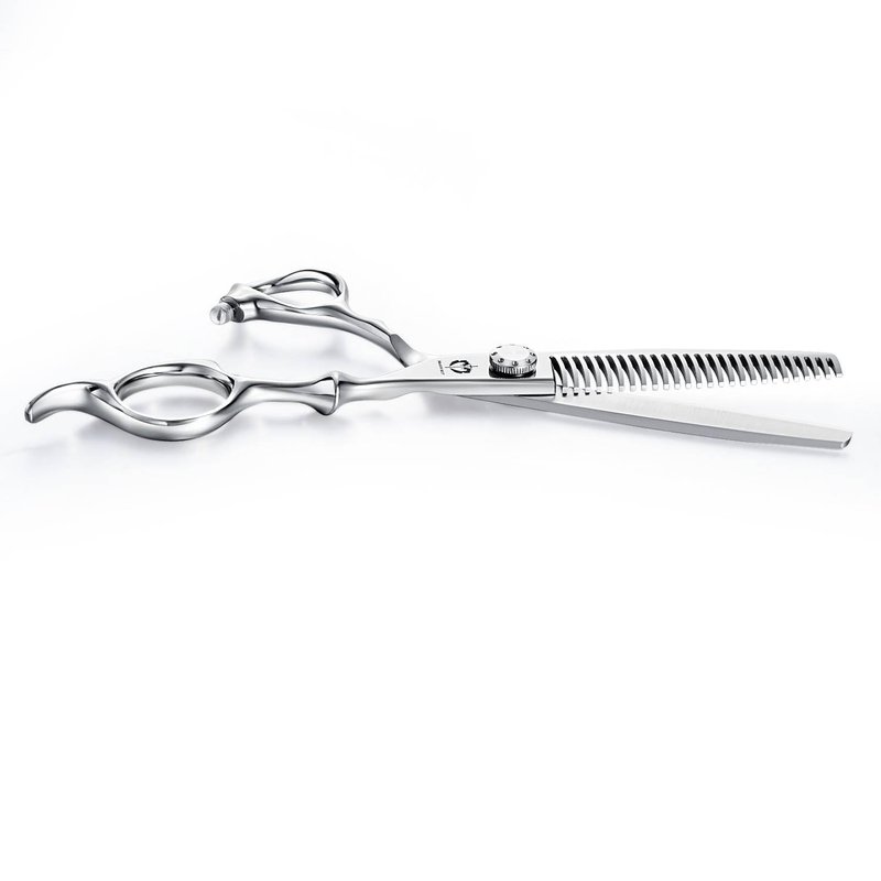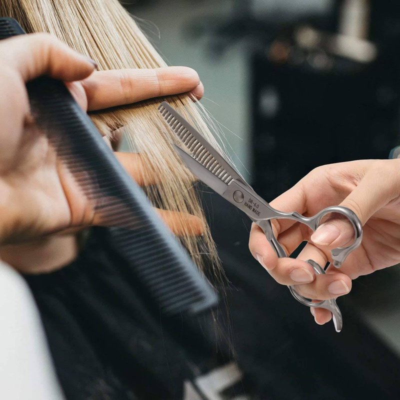 - Ergonomic Design - Offset grip design which means thumb handle is shorter than finger handle enables hairdresser’s elbow to work in a lower and more natural position. The hair shear reduces over extension of thumb and wrist motion and minimizes risk of developing RSI.