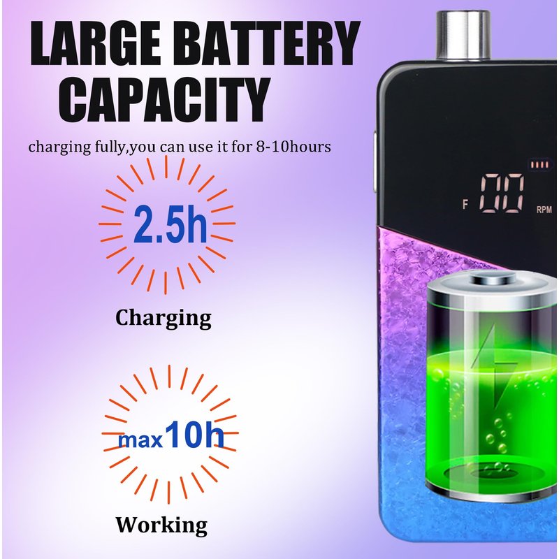 - Extended Battery Power for Continuous Use: Say goodbye to frequent charging interruptions! Our electric nail drill is powered by a rechargeable 2600mAh lithium battery, offering up to 8-10 hours of uninterrupted grooming on just a 2-hour charge. Enjoy extended sessions of perfecting your manicure or pedicure without the hassle of constant recharging.