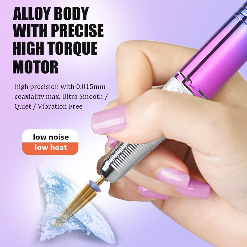 - Feather-Light and Comfortable Design: Experience ultimate comfort during nail care with our electric nail file machine's aluminum alloy handpiece. Crafted for lightweight handling, effective heat dissipation, and minimal vibration, it's ideal for professionals and at-home users alike, ensuring fatigue-free usage even during extended sessions.