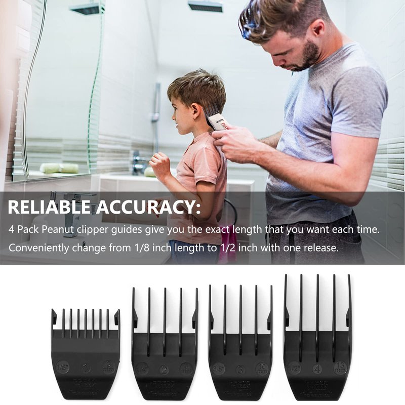 - PACKAGE INCLUDED: 4 pack attachment comb cutting guides for Wahl Peanut hair clipper(1/8",1/4", 3/8", 1/2").