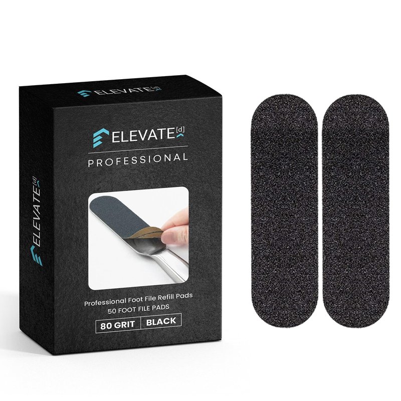 - 2 GRIT OPTIONS: The foot scrubber replacement pads by Elevated come in two grit options: 60 and 100. Both of these peel-away abrasive professional foot file refill pads come in Black.