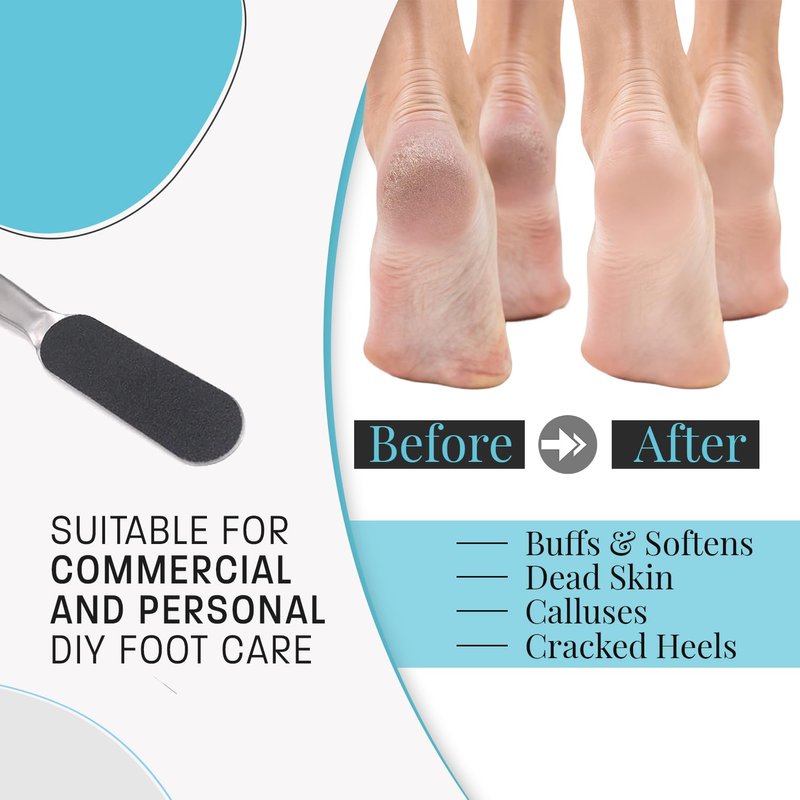 - UNIVERSAL FIT: This pedi file for feet fits most standard file bases and sanding foot rasps, as well as the stainless steel foot file. The dimensions of the foot file refills are 1.3" x 4.2". (These are just file refills, a foot file is not included).