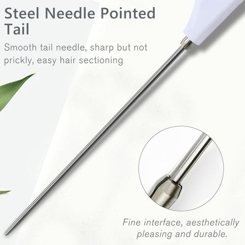 This retractable rat tail comb is crafted from high quality plastic, ensuring exceptional durability and resistance to deformation, outlasting standard combs. Its stainless steel pin tail adds heat resistance and prevents static for precise styling. The retractable design allows easy length adjustment, making it portable and safe from exposed metal tails. Simply press the top button to extend the pin tail for use and retract it afterward for clean, safe storage.