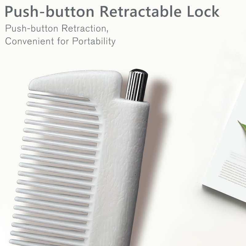 - Featuring a retractable mechanism, this comb adjusts its length for easy portability and safe storage, protecting against potential harm from exposed metal tails. It also keeps the pin tail clean and ready for use.