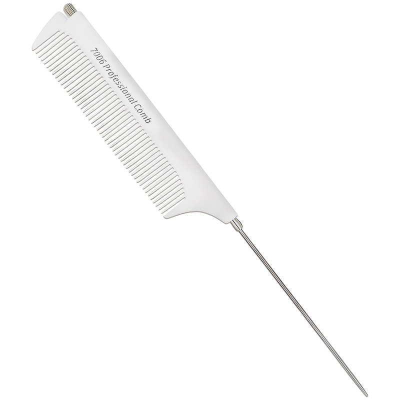 Professional Portable Fine Tooth Teasing Comb for Styling, Hair Cutting, White Retractable Metal Rat Tail Comb for Parting, Stainless Steel Pin Tail Teasing Comb for Salon