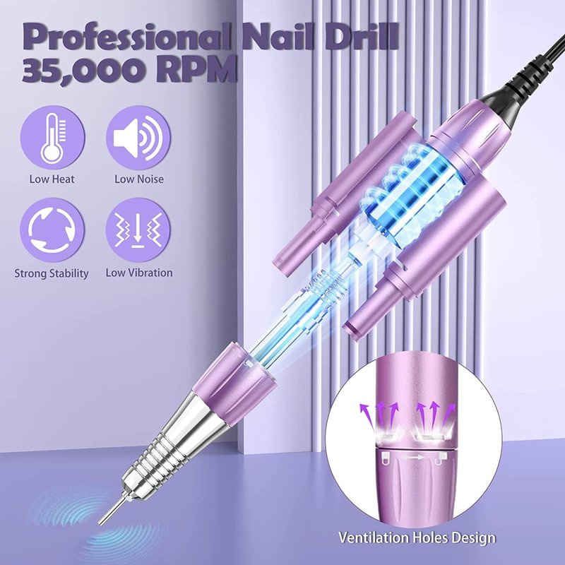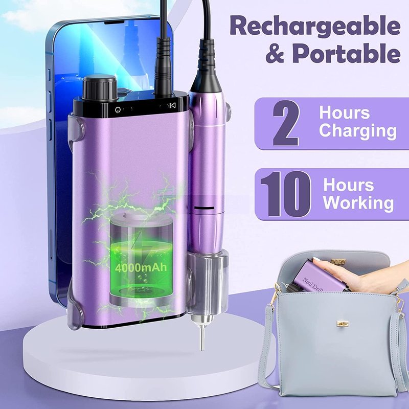 Professional Rechargeable Nail Drill 35000 RPM, Electric Nail File for Shaping, Removing & Polishing Gel Nails, Lightweight & Easy to Use, Ideal for Home & Salon Manicure Pedicure(Purple)