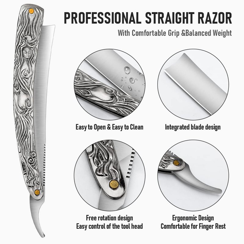 - 【High Quality Material】The manual razor adopts a stainless steel blade, plus a first layer cowhide material sharpening cloth for the razor. The razor blade has high hardness, not easy to rust in a humid environment, has strong heat resistance, more convenient to clean and maintain, and has a long service life.