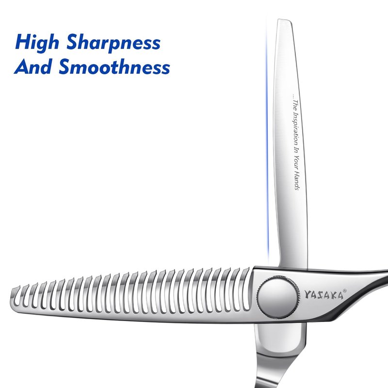 - High-quality Materials: YASAKA thinning shears for hair cutting made of high quality cobalt alloy stainless steel, which is extremely hard and durable with a hardness of 60-61°. This allows thinning scissors to cut all types of hair very easy, from coarse and hard to fine and soft, while using high hardness and ultra-high sharpness