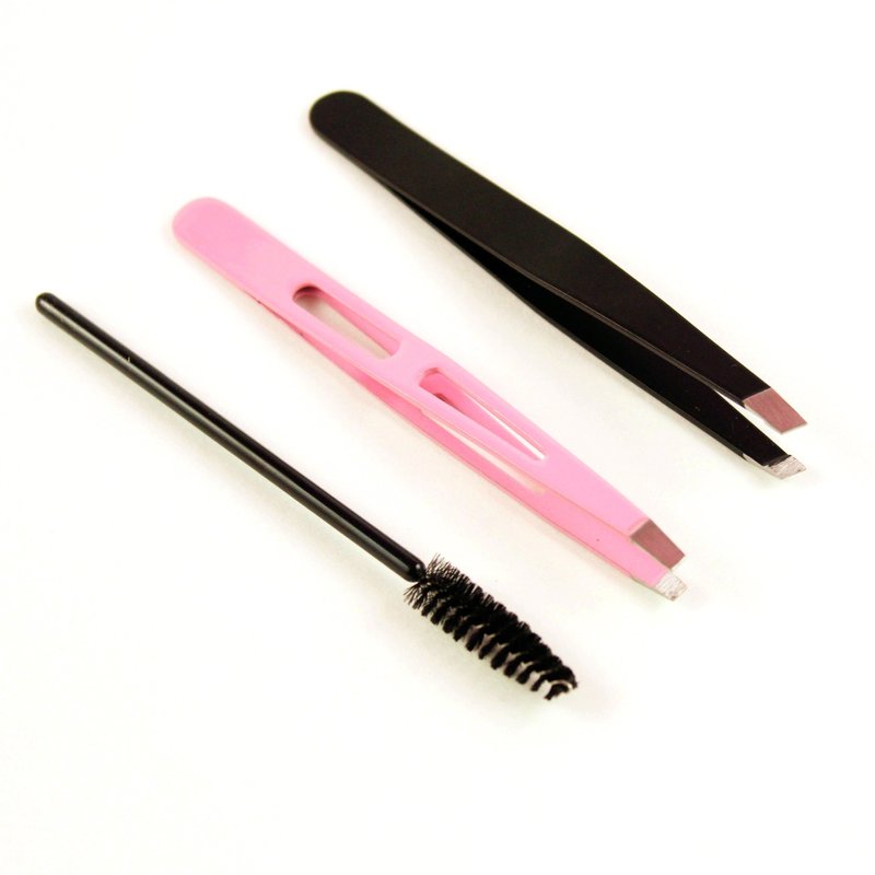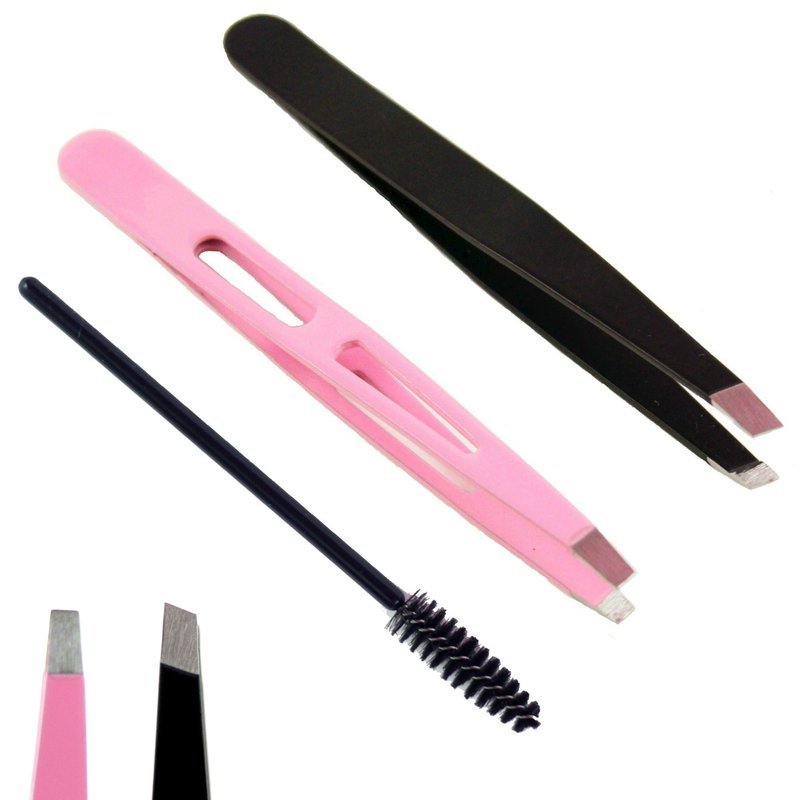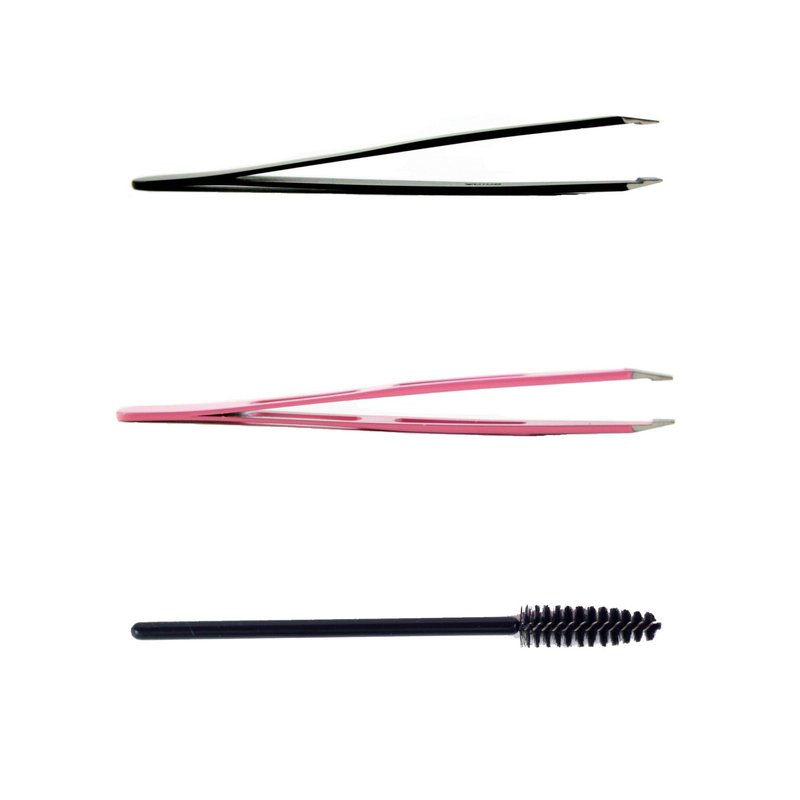 - What’s Included: Slant Tip Tweezers + Straight Tip Tweezers + Mini Eyebrow Brush (Pink + Black)