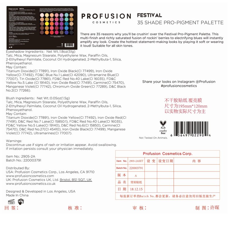 - Profusion Cosmetics Palette is incredibly easy to use, making your makeup routine a breeze, There are 35 reasons why you’ll be crushin’ over the Festival Eyeshadow Palette