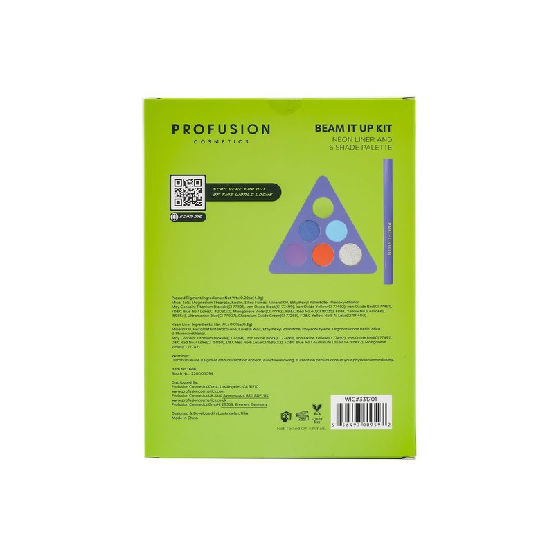 Profusion Cosmetics UFO Beam It Up Kit, 6 Shade Eyeshadow Palette With Neon Liner Shine Bright for Day to Night Stunning Eye Looks, Raise Your Makeup Routine With Premium Beauty Tool