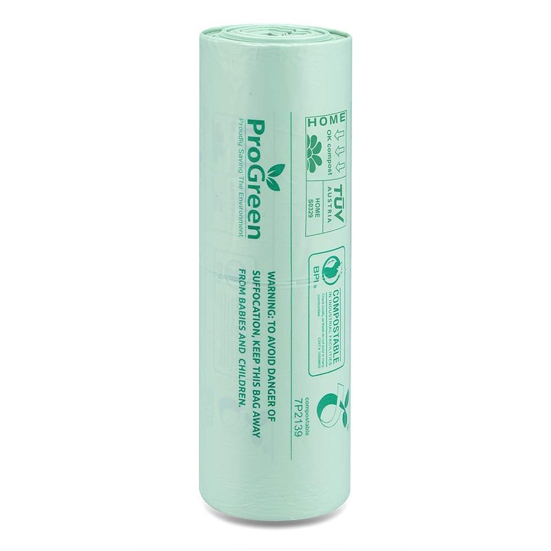 ProGreen 100% compostable bags made out of corn starch is the best bag to choose when it comes to industrial and home/backyard composting certified by US BPI & TUV AUSTRIA, The box is designed to pull out the bags easily, comes with a nice mint green color