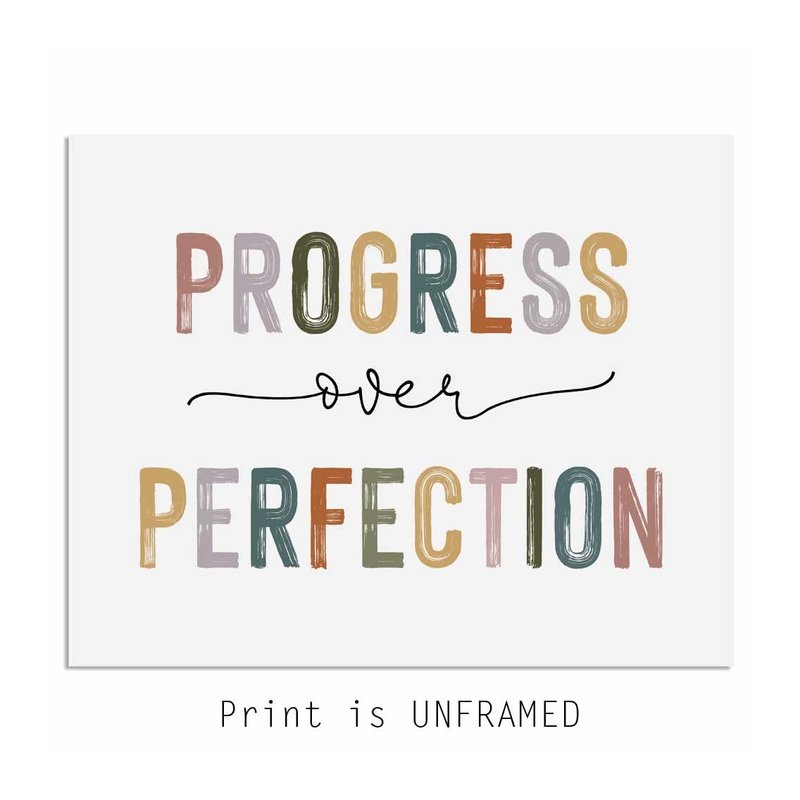 Progress Over Perfection Print, Classroom Decor, Kids Motivational, Inspirational Office Decor, Kid's Room Decor, Teacher Gift, Boho Classroom Wall Art, Unframed (8X10 INCH)