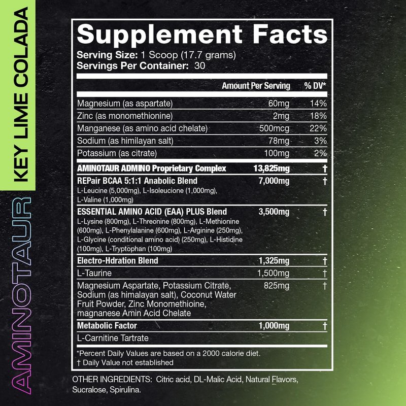 Project AD Aminotaur - Amino Acids with BCAAs, Pre Workout, Amino Energy, BCAA, Amino Acids, Keto Friendly, Coffee Extract, Energy Powder (Key Lime Colada)