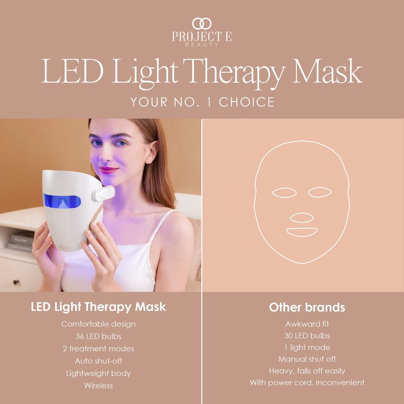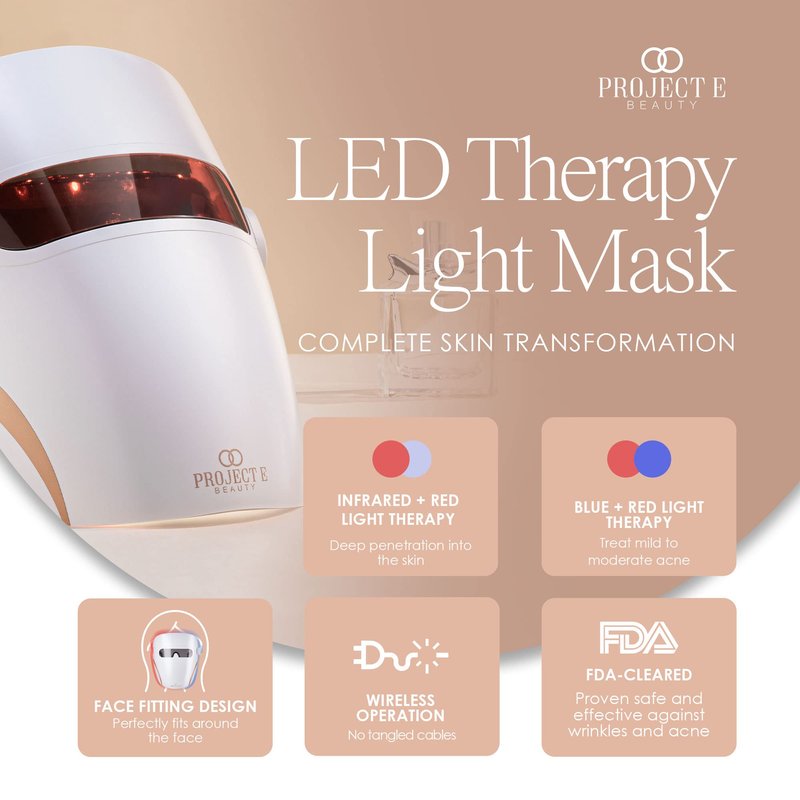 Project E Beauty LED Light Therapy Mask FDA-Cleared | Infrared, Red & Blue Light Therapy | Collagen Boost | Anti-Wrinkle & Anti-Acne | Wireless Face Mask | Advanced Skincare | All Skin Types